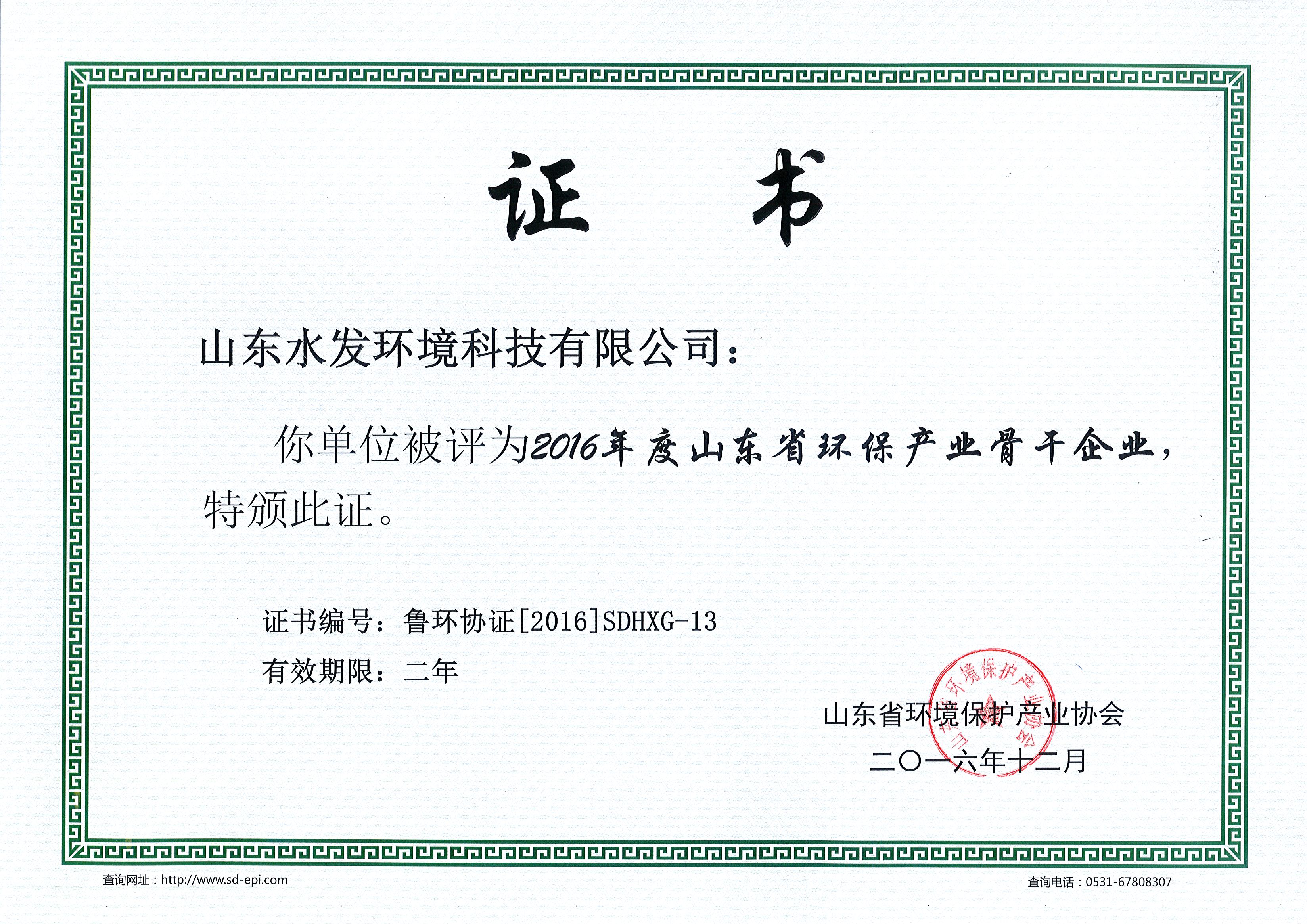 詳細說明:水發(fā)環(huán)境科技 榮獲山東省環(huán)保產(chǎn)業(yè)骨干企業(yè)稱號...