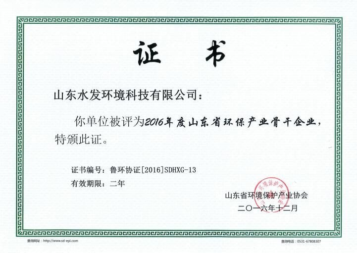 近日,在山東省環(huán)境保護產(chǎn)業(yè)協(xié)會召開的2016年度理事會上,山東水發(fā)環(huán)境科技有限公司榮獲了“2016年度山東省環(huán)保產(chǎn)業(yè)骨干企業(yè)”稱號。